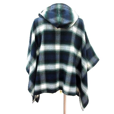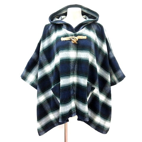 ローリーズファーム LOWRYS FARM ポンチョコート チェック フード F 紺 ネイビー レディース
