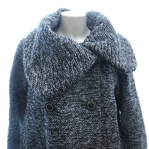 ヘザー Heather コート ダブル ボリュームカラー 中綿 ツイード 総裏地 F 黒 ブラック グレー レディース